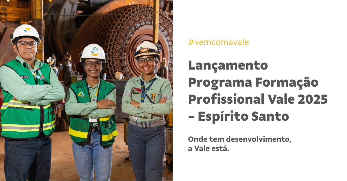 A Vale está com inscrições abertas para 112 vagas de qualificação profissional no Espírito Santo, por meio do seu Programa de Formação Profissional (PFP). A iniciativa, desenvolvida em parceria com a Prefeitura de Vitória, tem como objetivo fomentar a empregabilidade e capacitar mão de obra para atender à demanda do setor industrial.